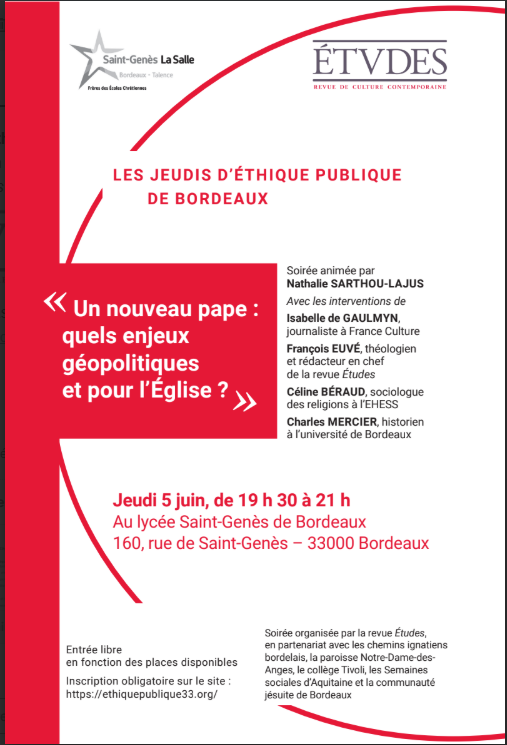 5 juin 2025 : « Léon XIV, un nouveau pape : quels enjeux géopolitiques et pour l’Église ? »